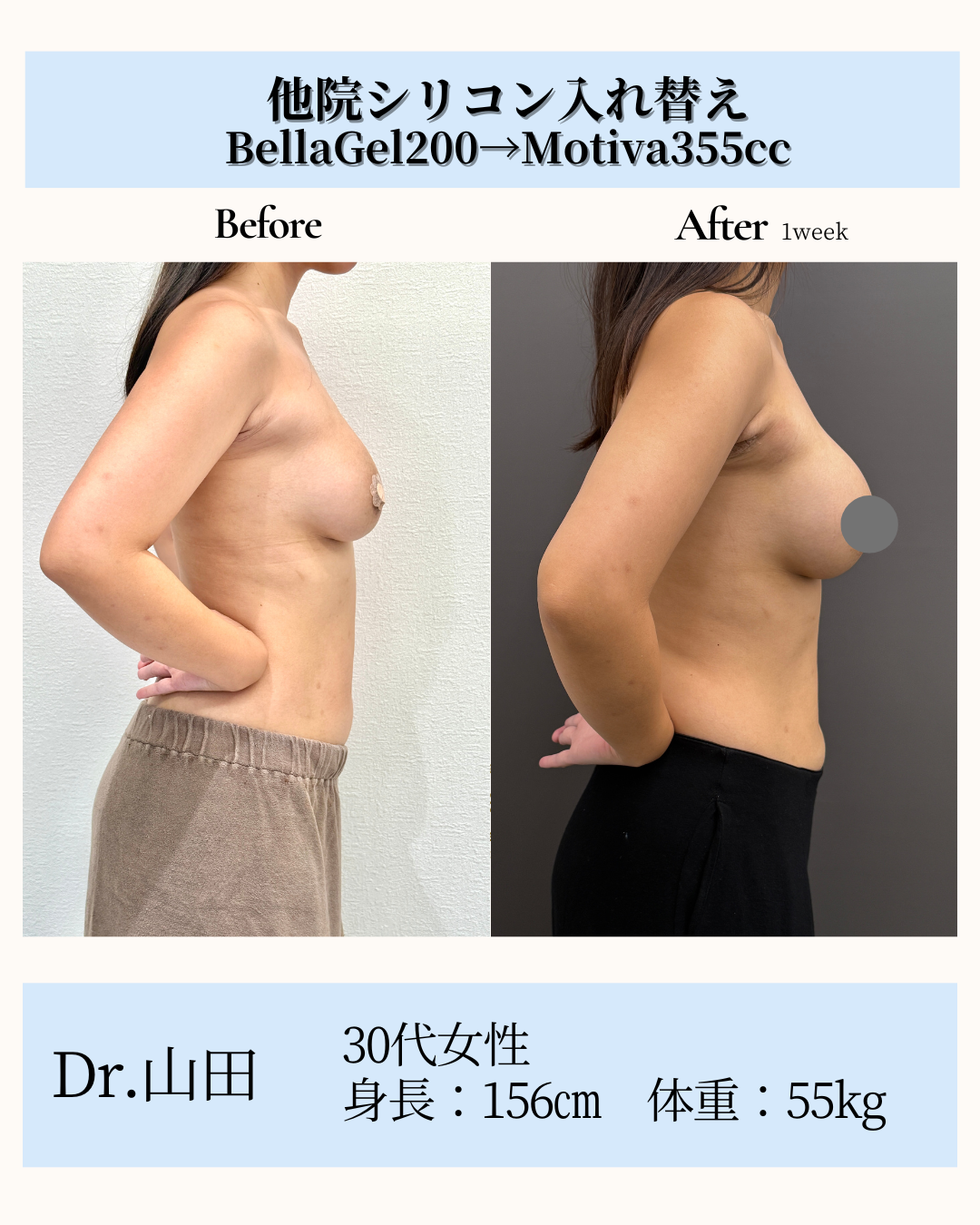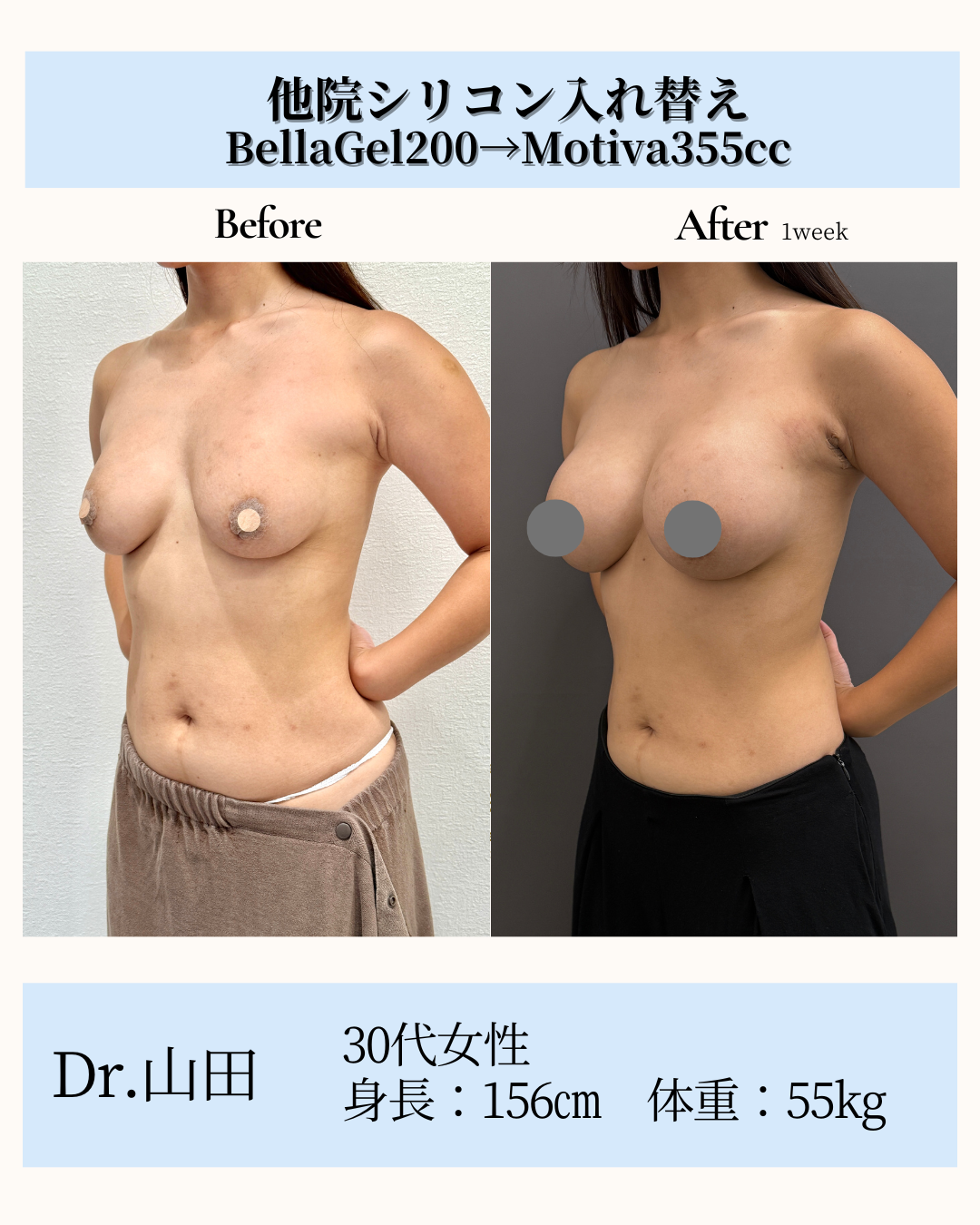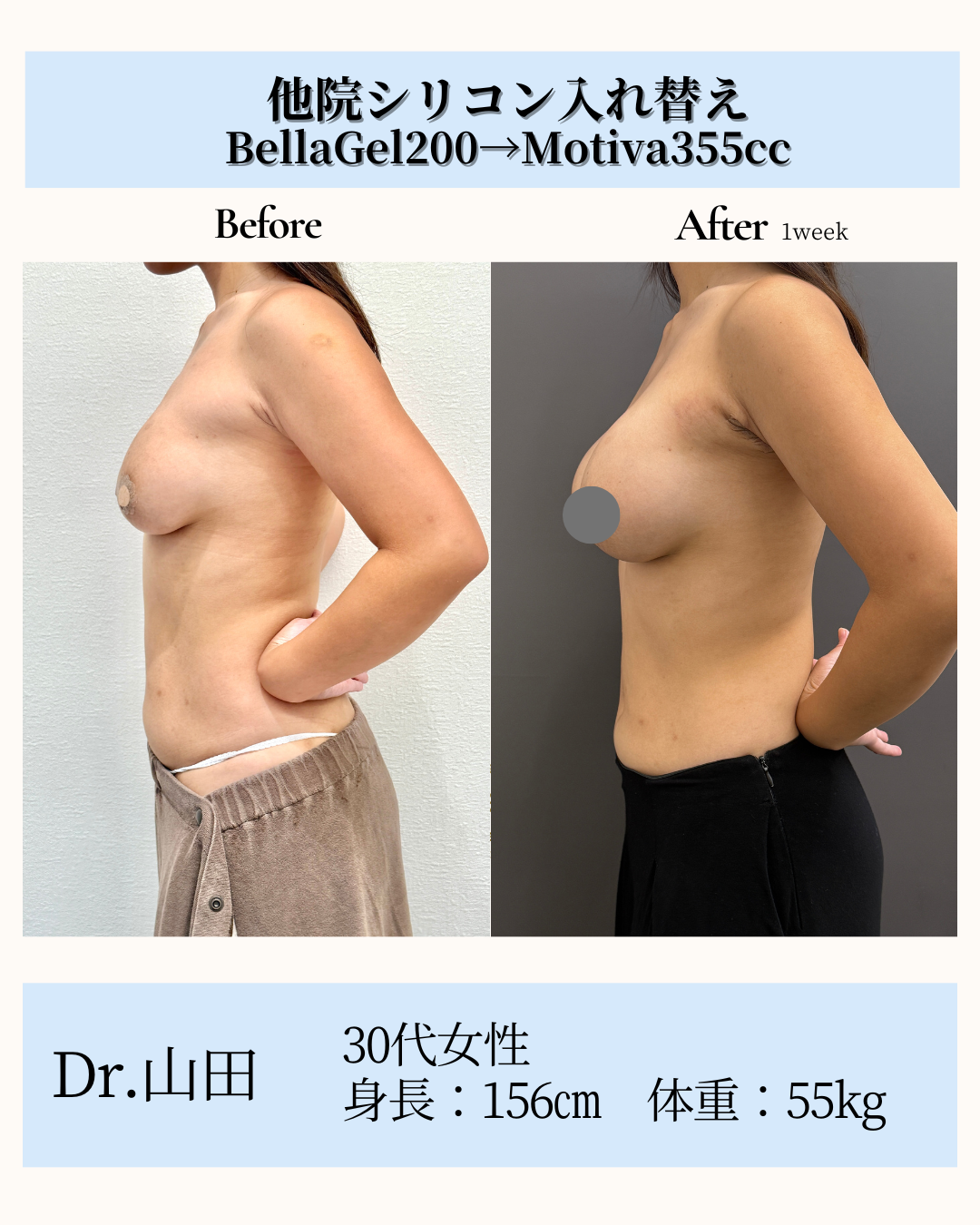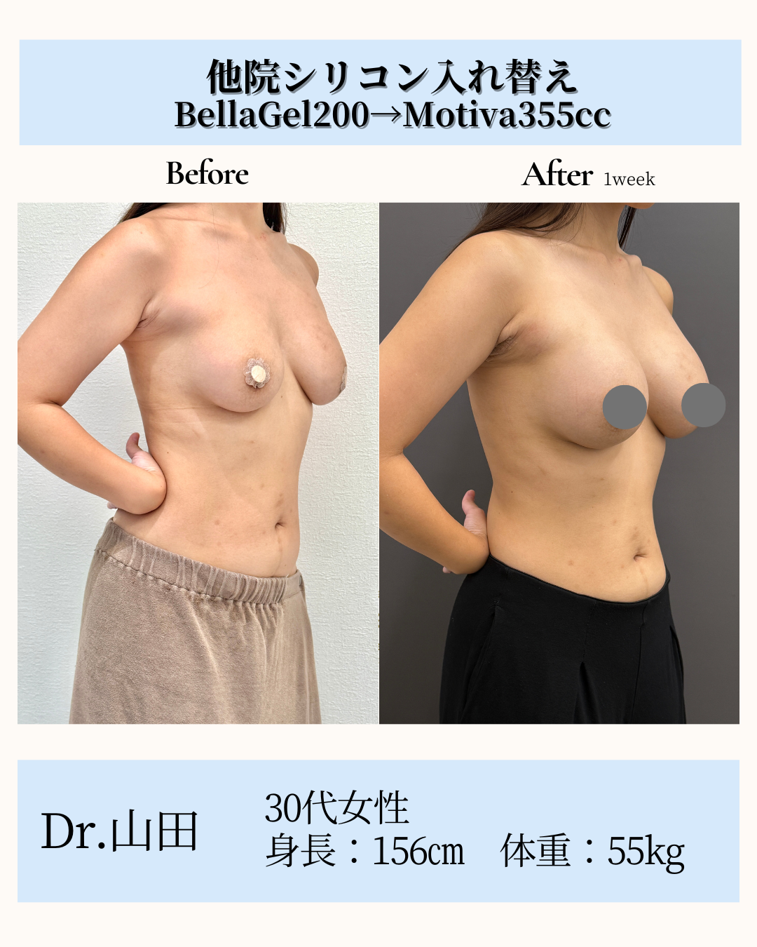 - インプラントの種類:ベラジェル200cc → モティバFull355cc