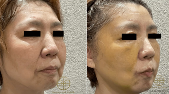 ▪内出血:内出血は、全体的に黄色くなる程度で、メイクで隠せる方がほとんどです。赤紫のようなアザが長く残る方は少ないです。
