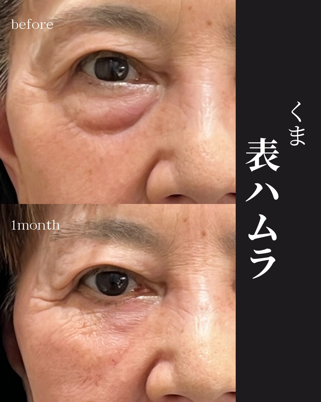 加齢により「目袋のふくらみ」「目の下の影(クマ)」「皮膚のたるみ」が目立ってくる方に適した治療で、目元の若返りに大きな効果があります。
