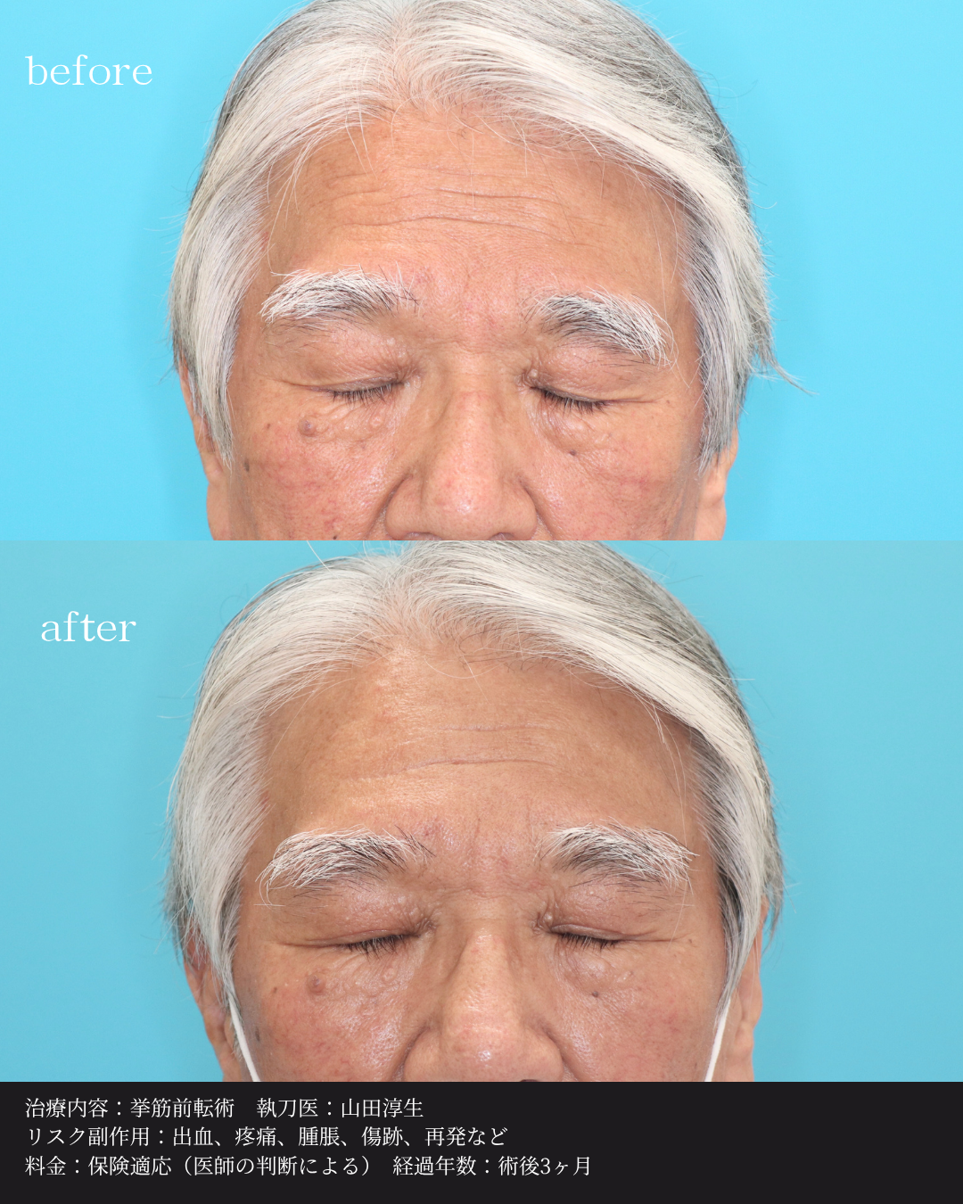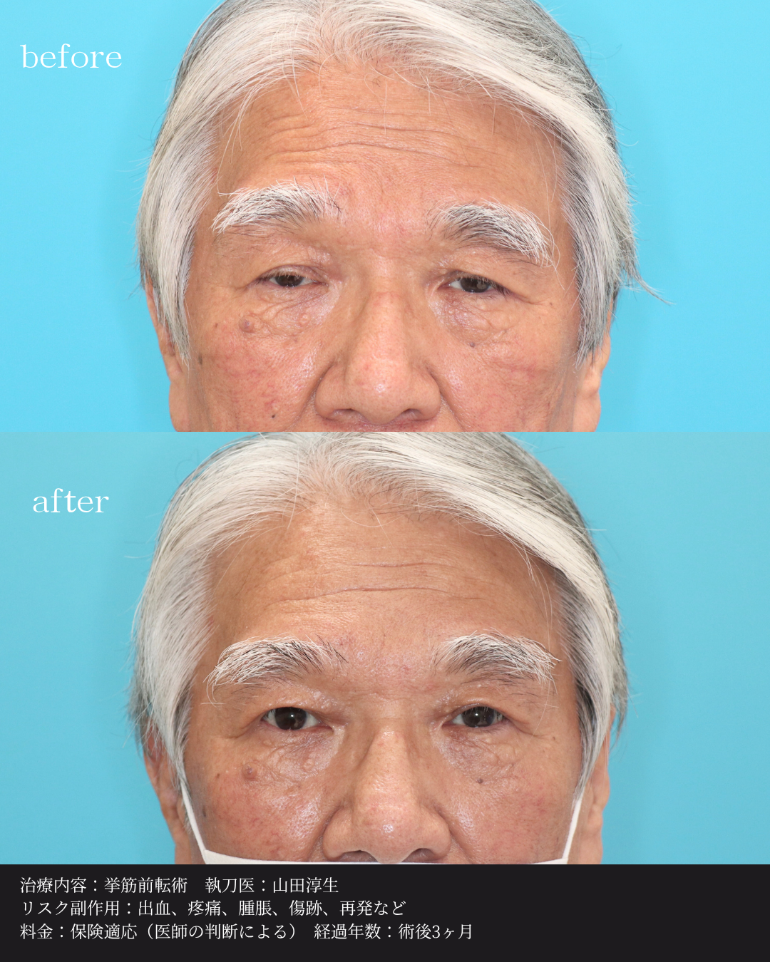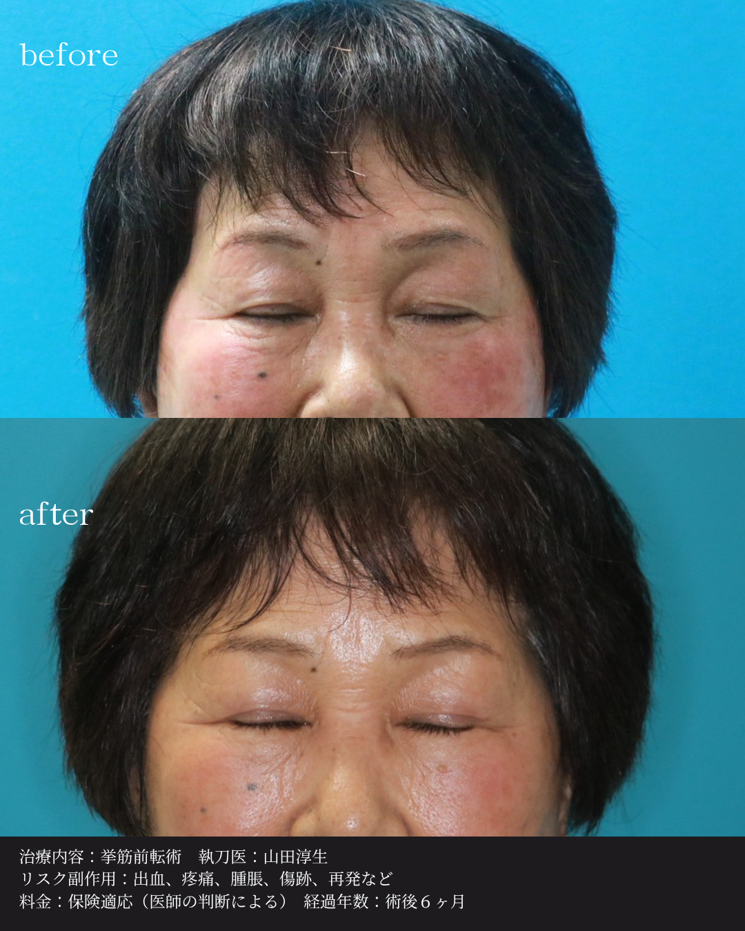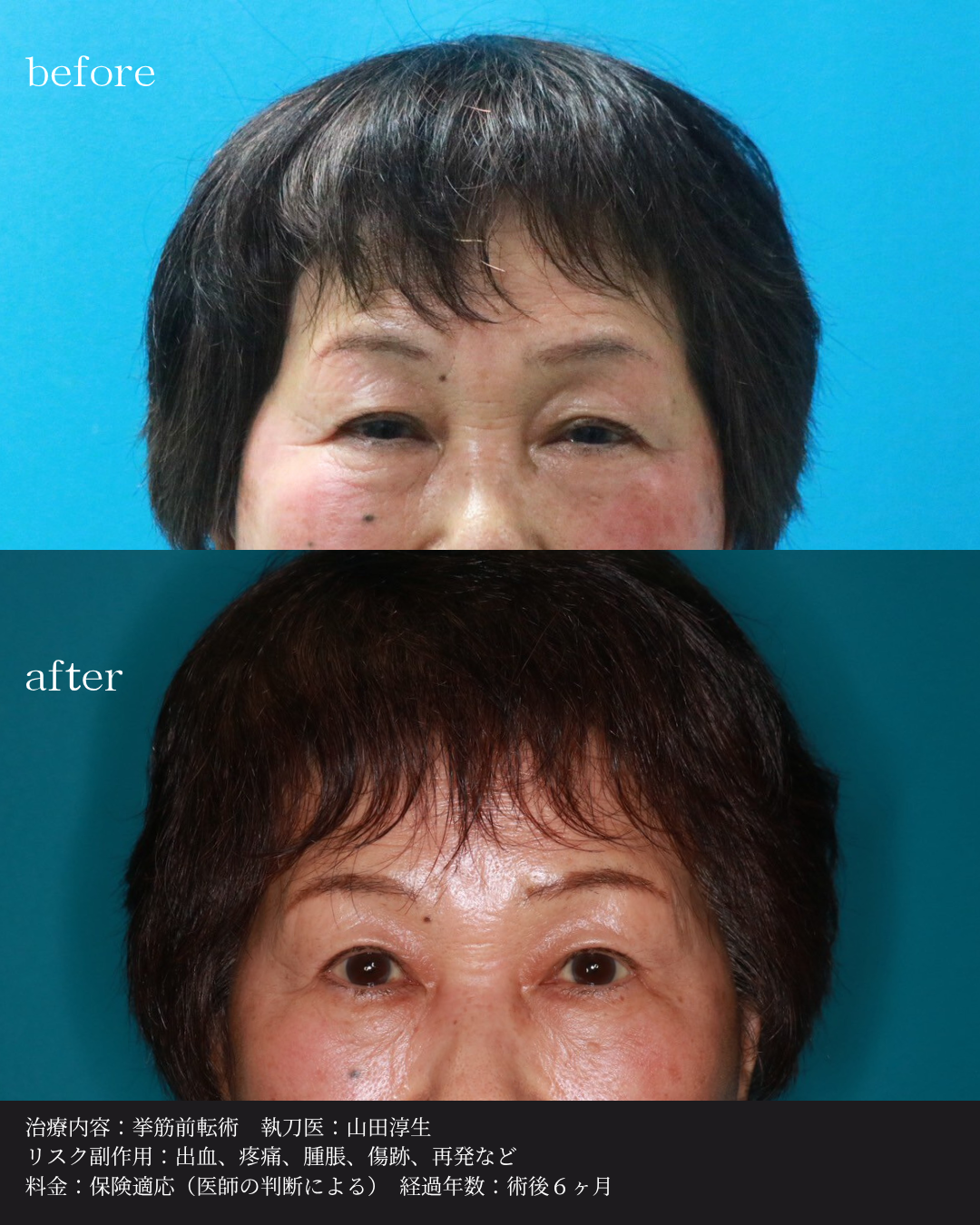 重度の場合、額の筋肉(前頭筋)の力を利用してまぶたを引き上げる方法を選択します。