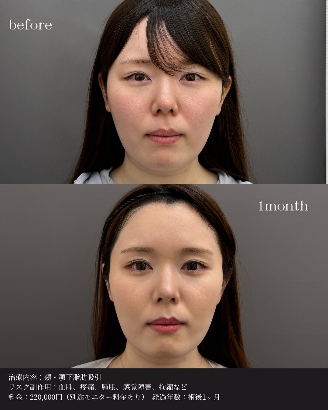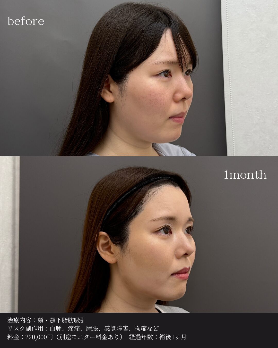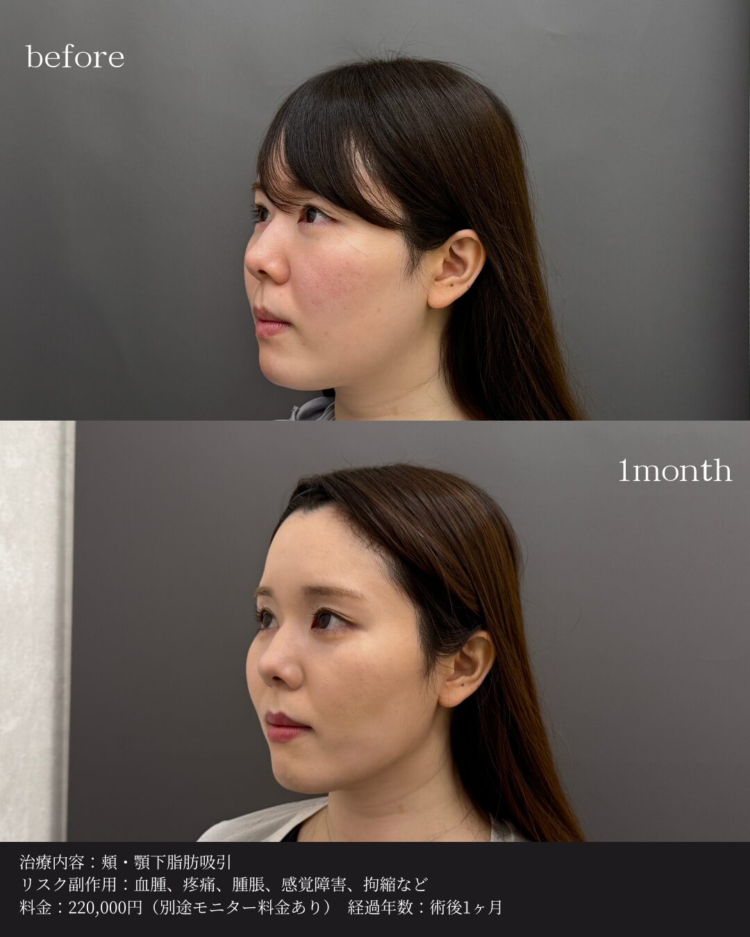 今回ご紹介するのは、頬・顎下の脂肪吸引を受けられた女性の患者さまです。