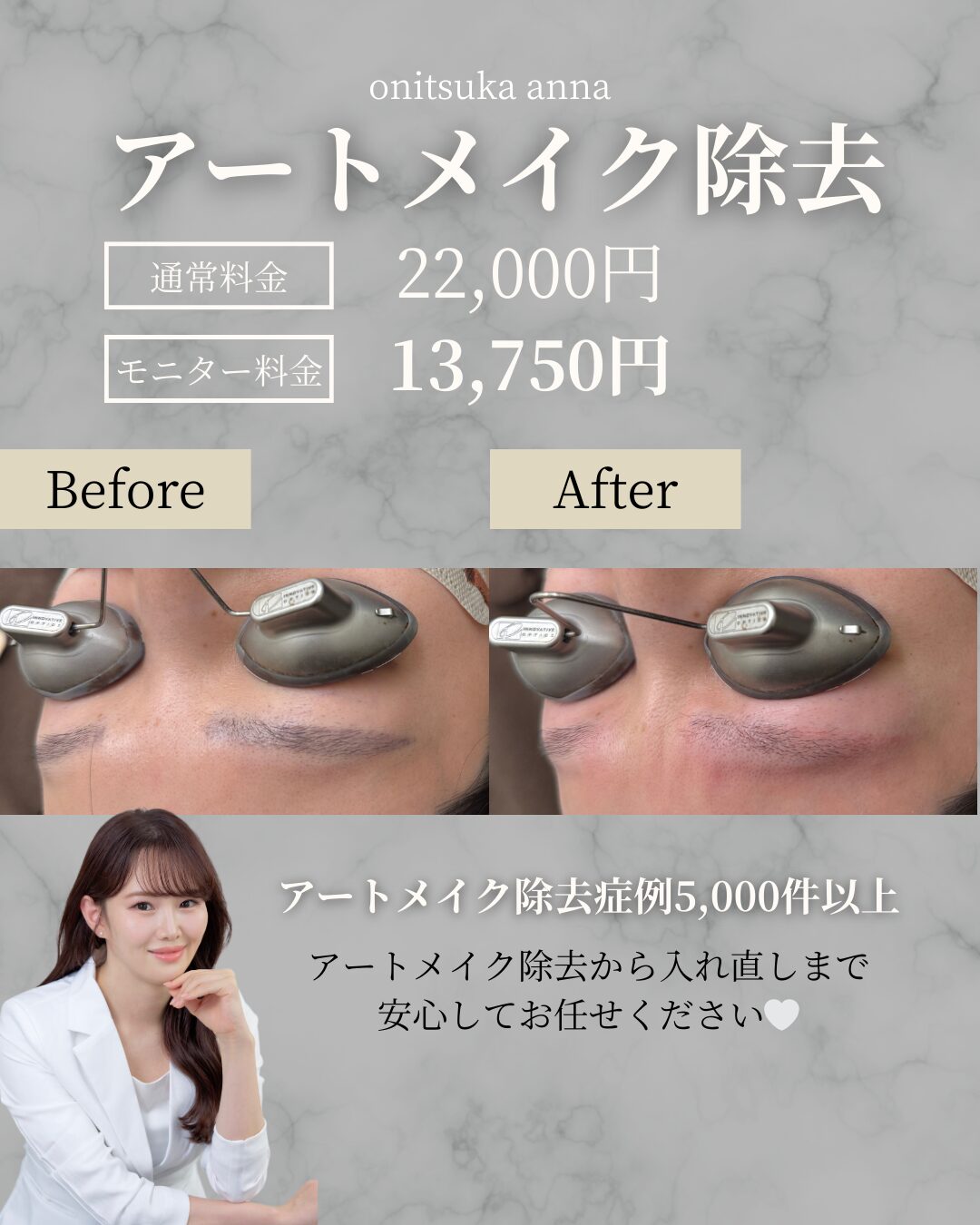 アートメイク除去は“回数勝負”ではありません。肌の回復期間をしっかり挟みながら確実に進めることが、結果的に美しい仕上がりへの近道となります。